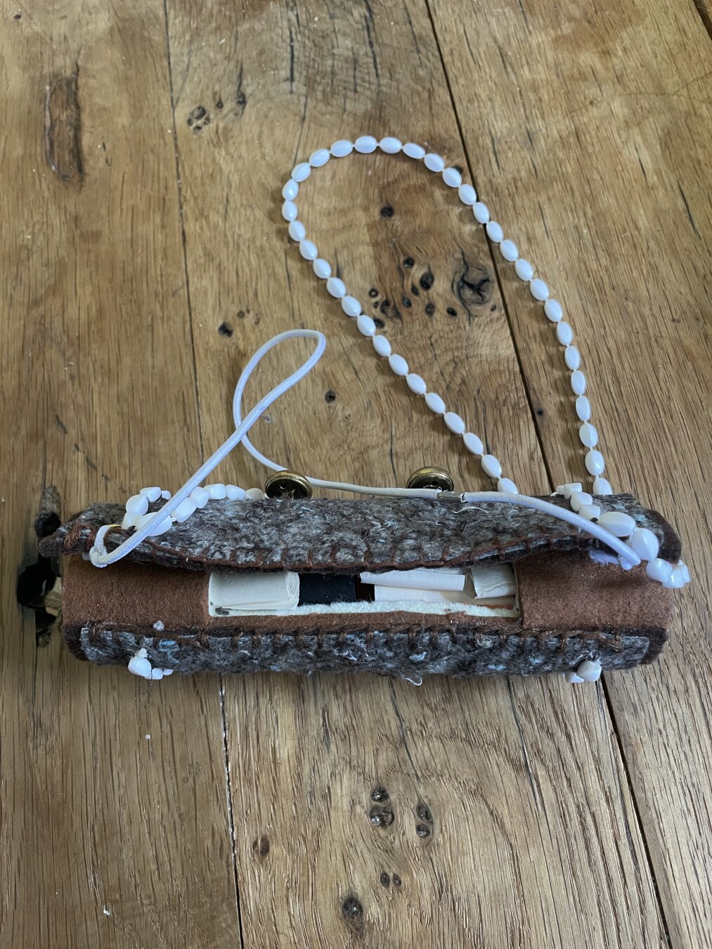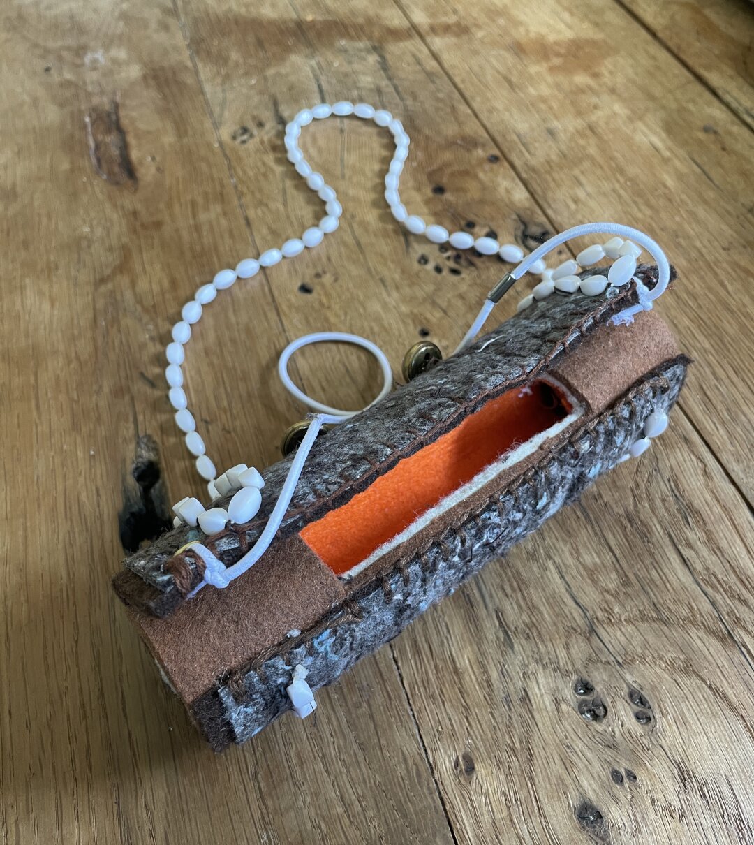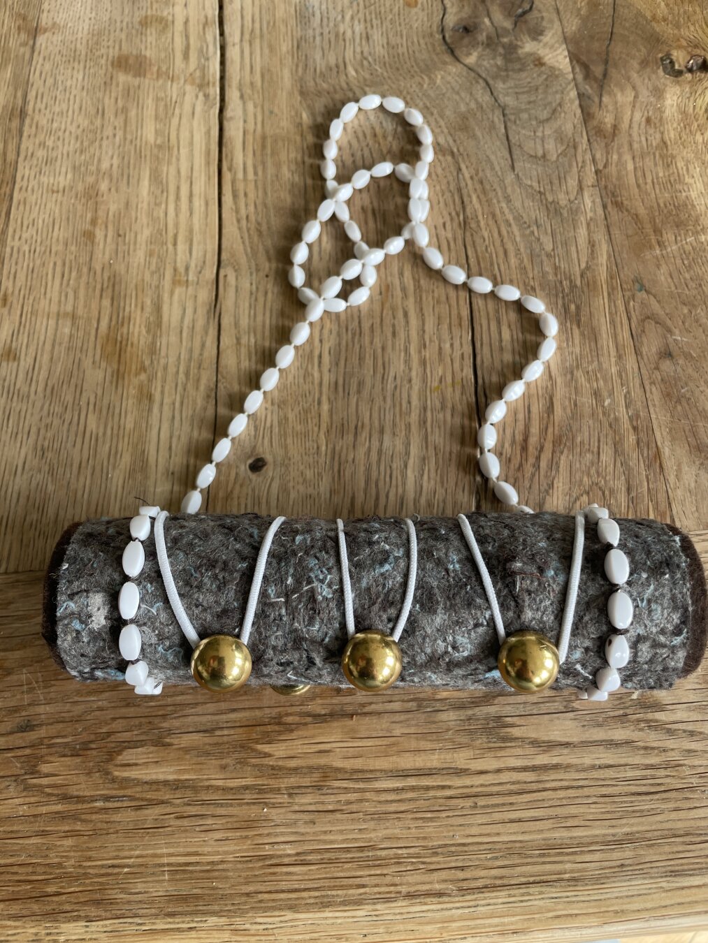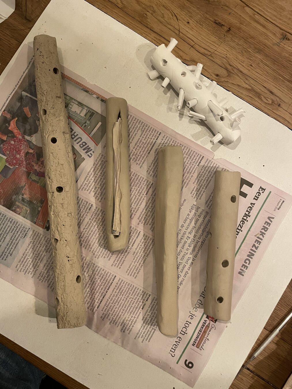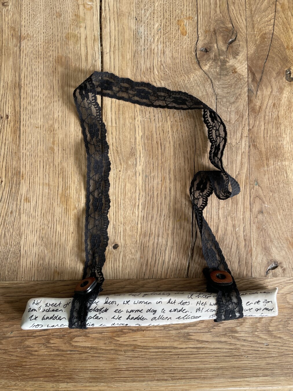 [16 apr 2026] Ontwerp een stok. Het werden er 5! Vier van keramiek, waarvan 3 om te dragen. Allemaal dragen ze herinneringen. In de vorm van een opgerold briefje (of meerdere) of een tekst. De stok-ketting van vilt was een soort backup project voor ‘t geval de keramiek zou mislukken.